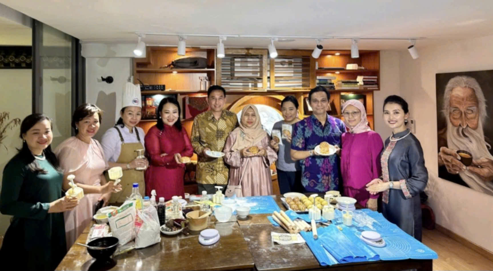 Các gia đình Tổng Lãnh sự ASEAN cùng đại biểu làm bánh trung thu