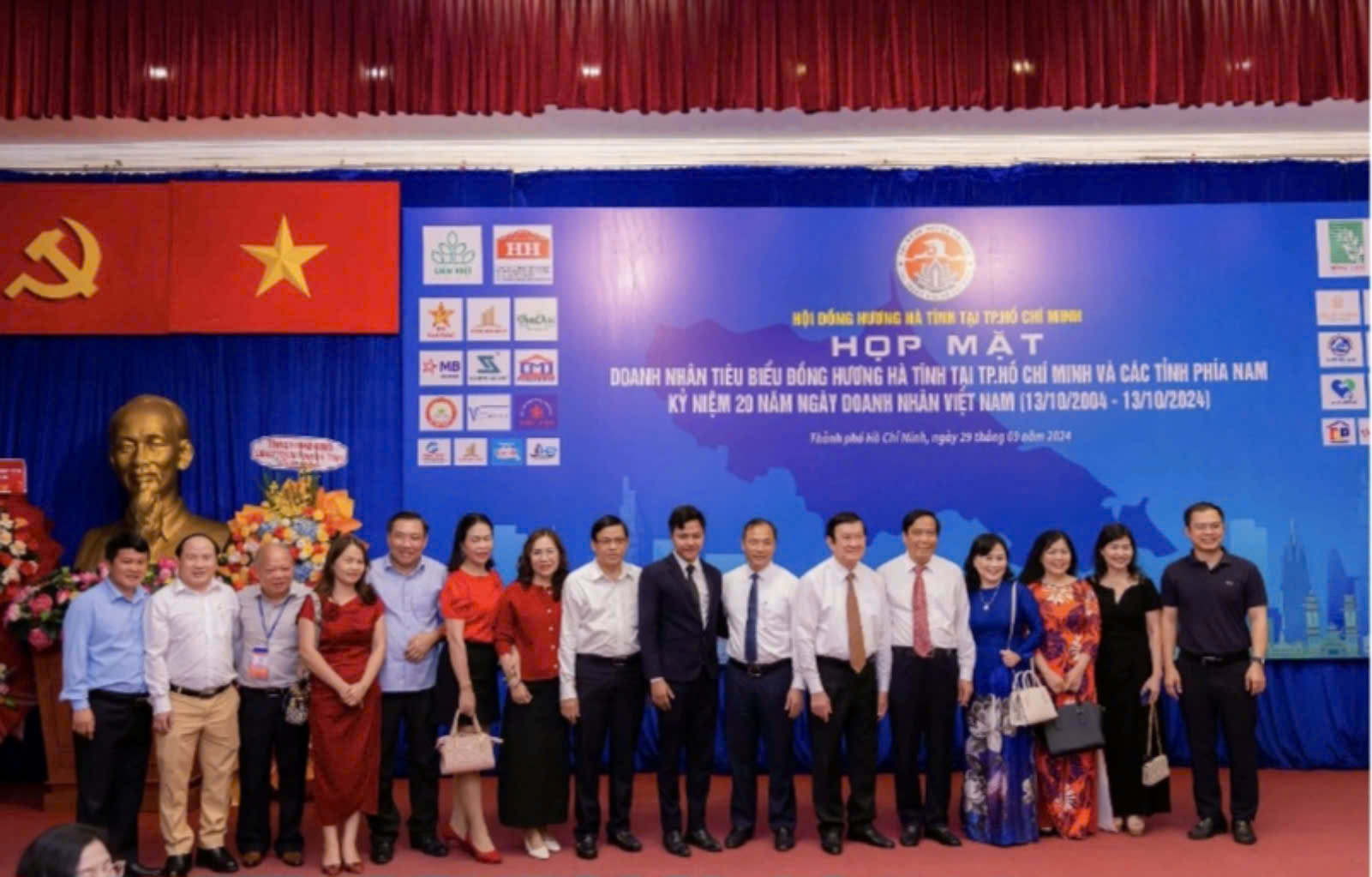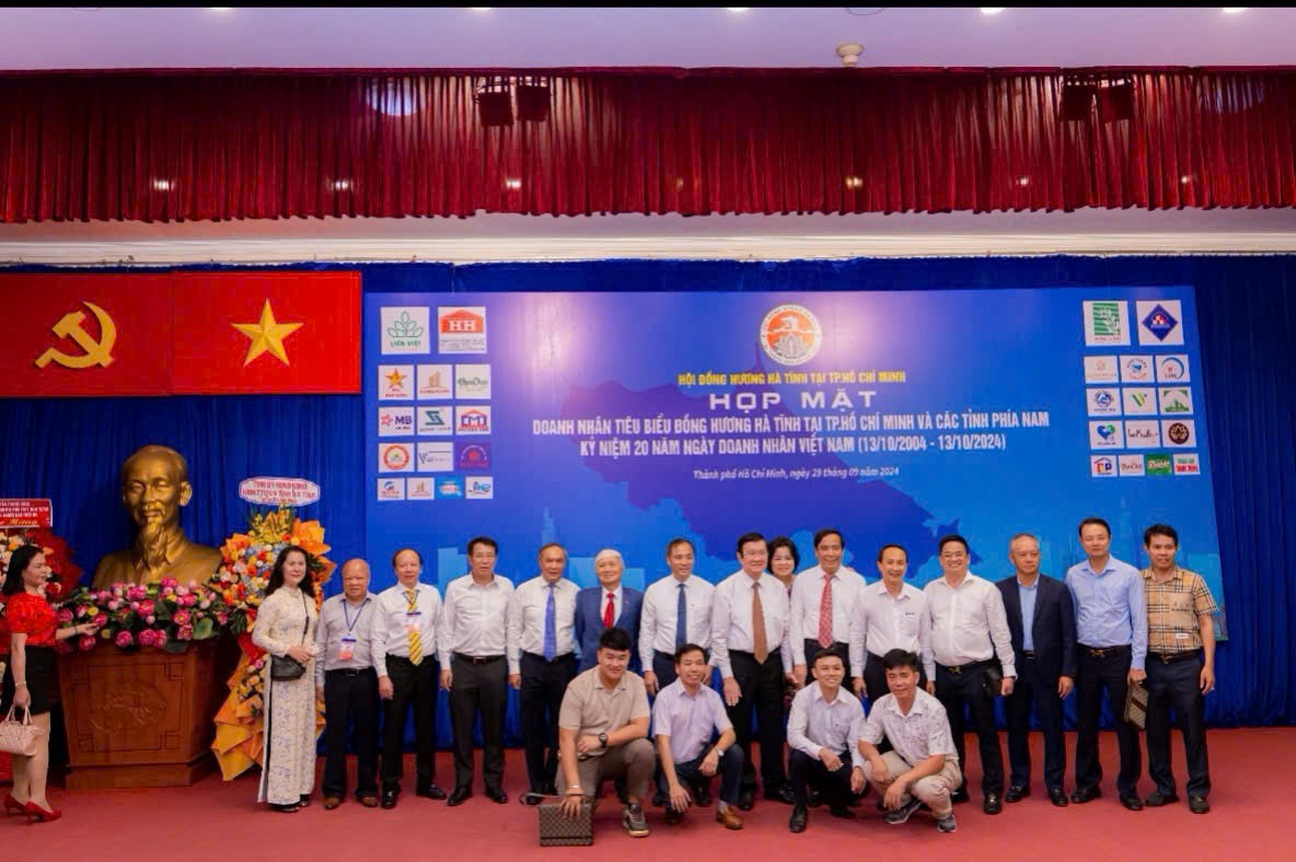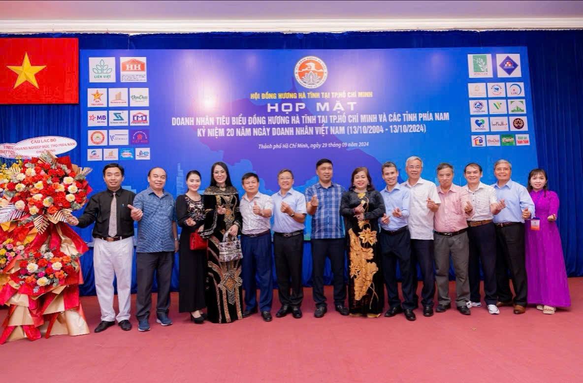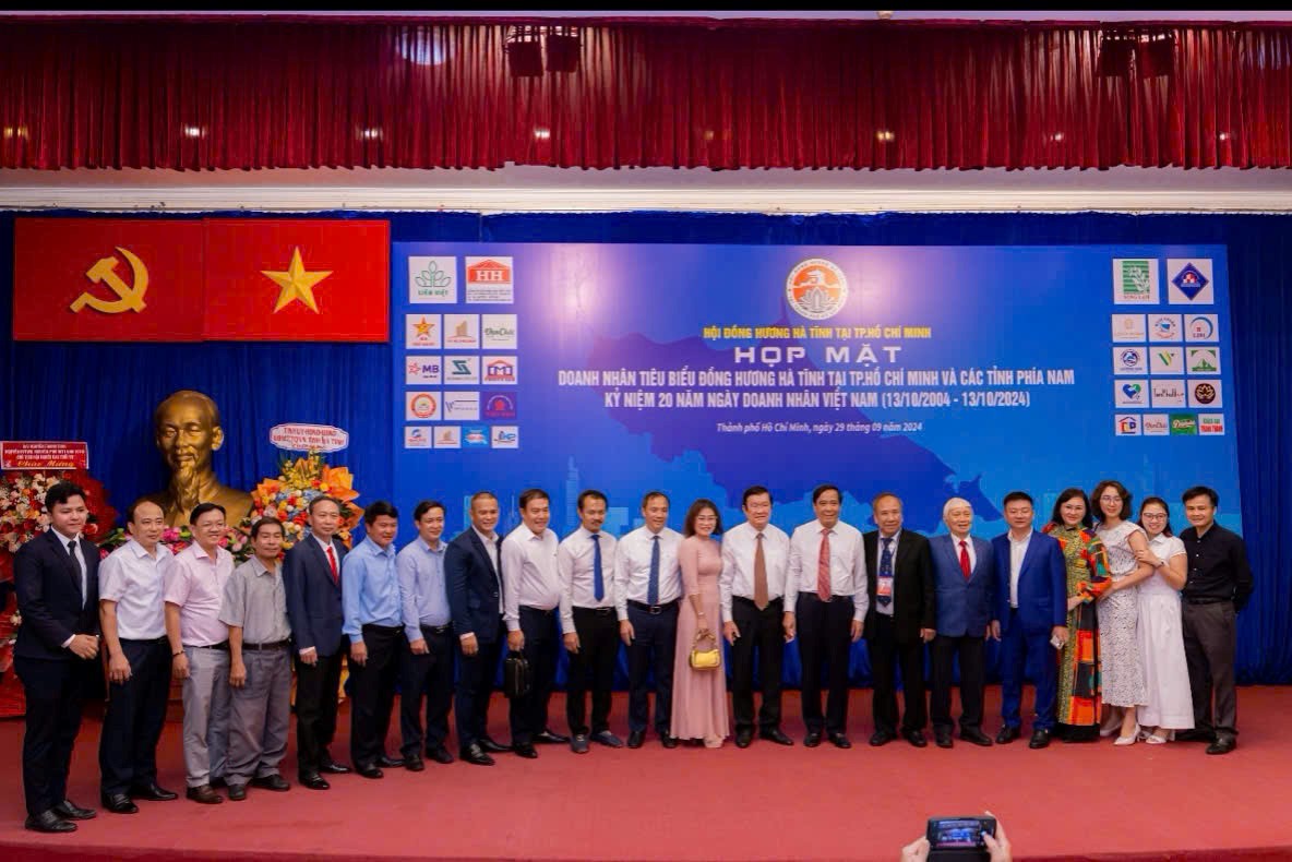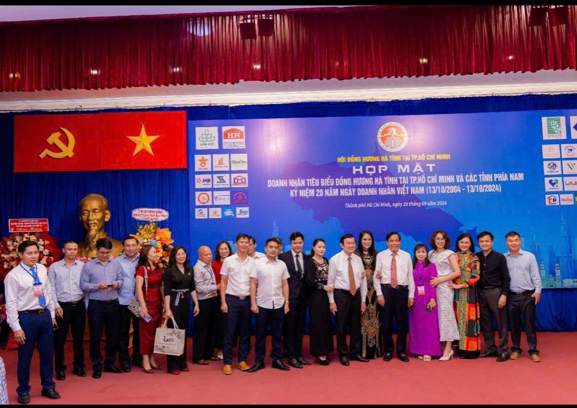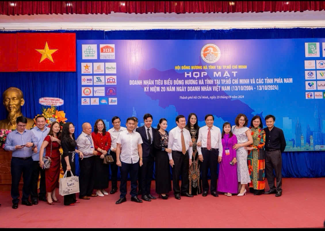 Vào ngày 29 tháng 9 năm 2024, tại Nhà Khách 108 Nguyễn Du (Dinh Độc Lập) Phường Bến Thành, Quận 1, TP. HCM đã diễn ra buổi Họp mặt Doanh nhân quê hương Hà Tĩnh tiêu biểu, nhân dịp Kỷ niệm 20 năm ngày Doanh nhân Việt Nam (13/10/2004 – 13/10/2024).