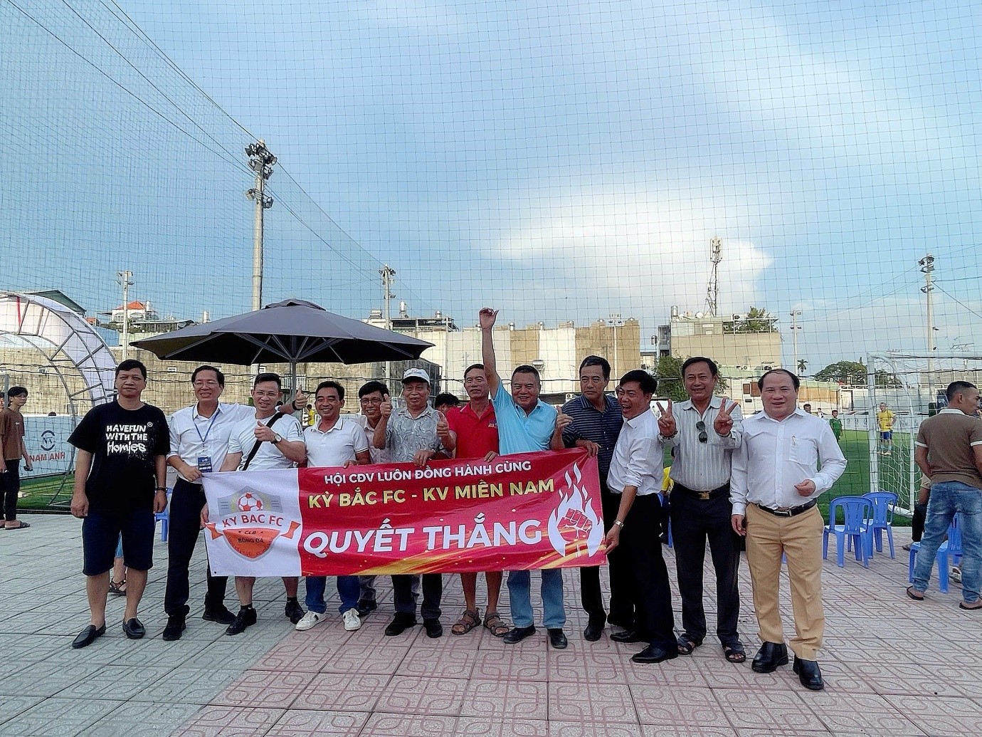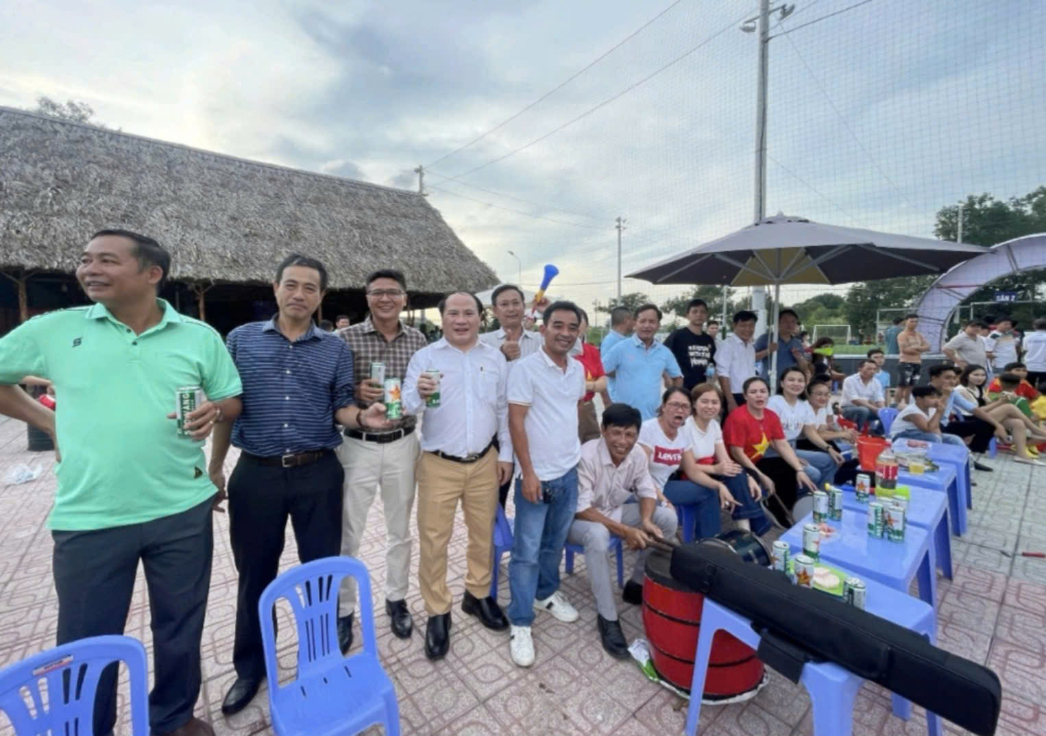 Các đại biểu và doanh nhân đồng hương Hà Tĩnh tham gia cổ động cho giải bóng đá Kỳ Anh, Hà Tĩnh sau khi tham gia họp hội đồng hương Hà Tĩnh tại TP. HCM
