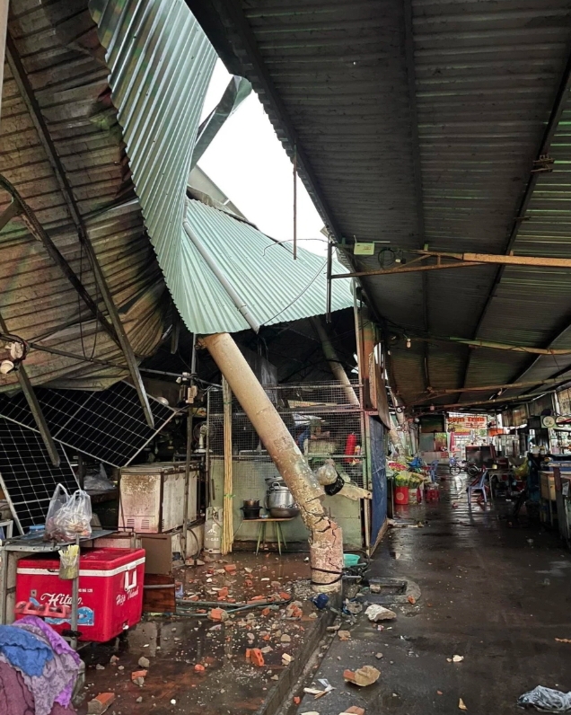 Tại TP. Tân Uyên, mưa lớn đã làm sập chợ Hưng Lợi 2, người phụ nữ bị nước cuốn trôi mất tích khi đang đi xe máy qua khu dân cư phường Uyên Hưng.