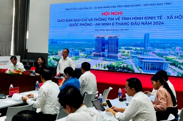 Chiều 2-8, UBND tỉnh Bình Dương tổ chức hội nghị giao ban báo chí và thông báo tình hình kinh tế – xã hội 6 tháng đầu năm 2024,và những trọng tâm các tháng cuối năm. Bà Trương Thị Bích Hạnh, Ủy viên Thường vụ, Trưởng Ban Tuyên giáo Tỉnh ủy; ông Võ Anh Tuấn, Chánh Văn phòng UBND tỉnh và ông Lê Hữu Phước, Chủ tịch Hội Nhà báo tỉnh cùng chủ trì họp báo, cùng các sở ban ngành tham dự.