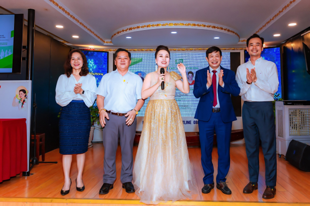 (Từ trái qua): Chị Văn Thị Mai Hạnh – Giám Đốc HTX Toàn Phát, Chị Nguyễn Thị Bích Hoà – Phó CT CLB DN&NT (lâm thời), Nhạc sỹ Lâm văn Hoàng – Trưởng ban nhạc, Ông Từ Nguyên Bình – Phó CT SME Hà Nội, chị Nguyễn Thị Thanh Hiền – CT CLB DN&NT (lâm thời)