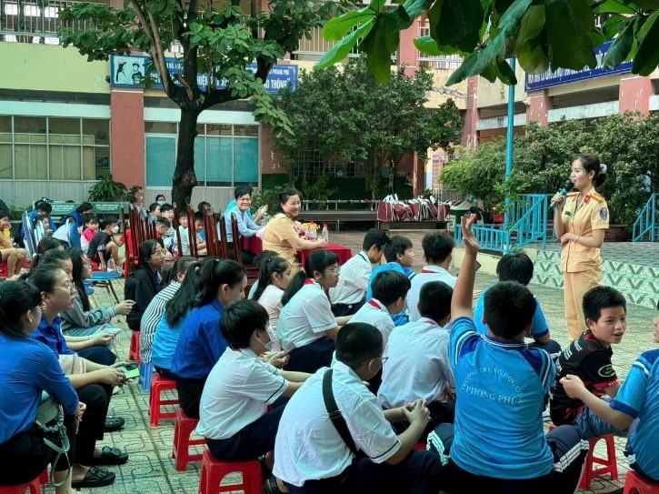 Học sinh, sinh viên là thế hệ tương lai của đất nước, do đó, công tác giáo dục pháp luật về trật tự ATGT cho các em ngay từ khi ngồi trên ghế nhà trường là rất quan trọng. Trong Tháng 9 năm 2024, Hội Phụ nữ Phòng đã tập trung đẩy mạnh công tác tuyên truyền, phổ biến, giáo dục pháp luật về trật tự ATGT cho học sinh mầm non, tiểu học, trung học cơ sở, trung học phổ thông, đến sinh viên các trường trung cấp nghề, cao đẳng, đại học….