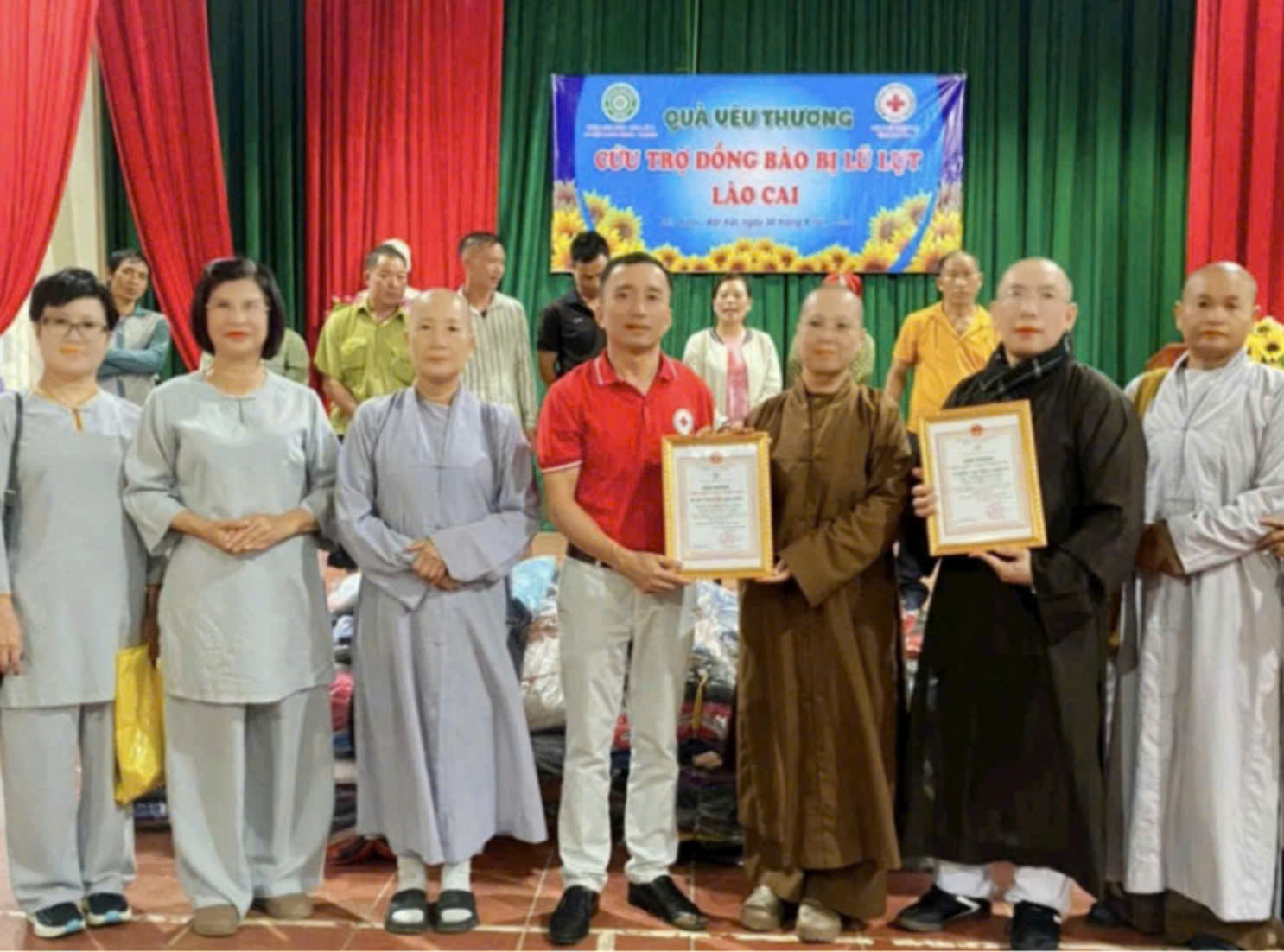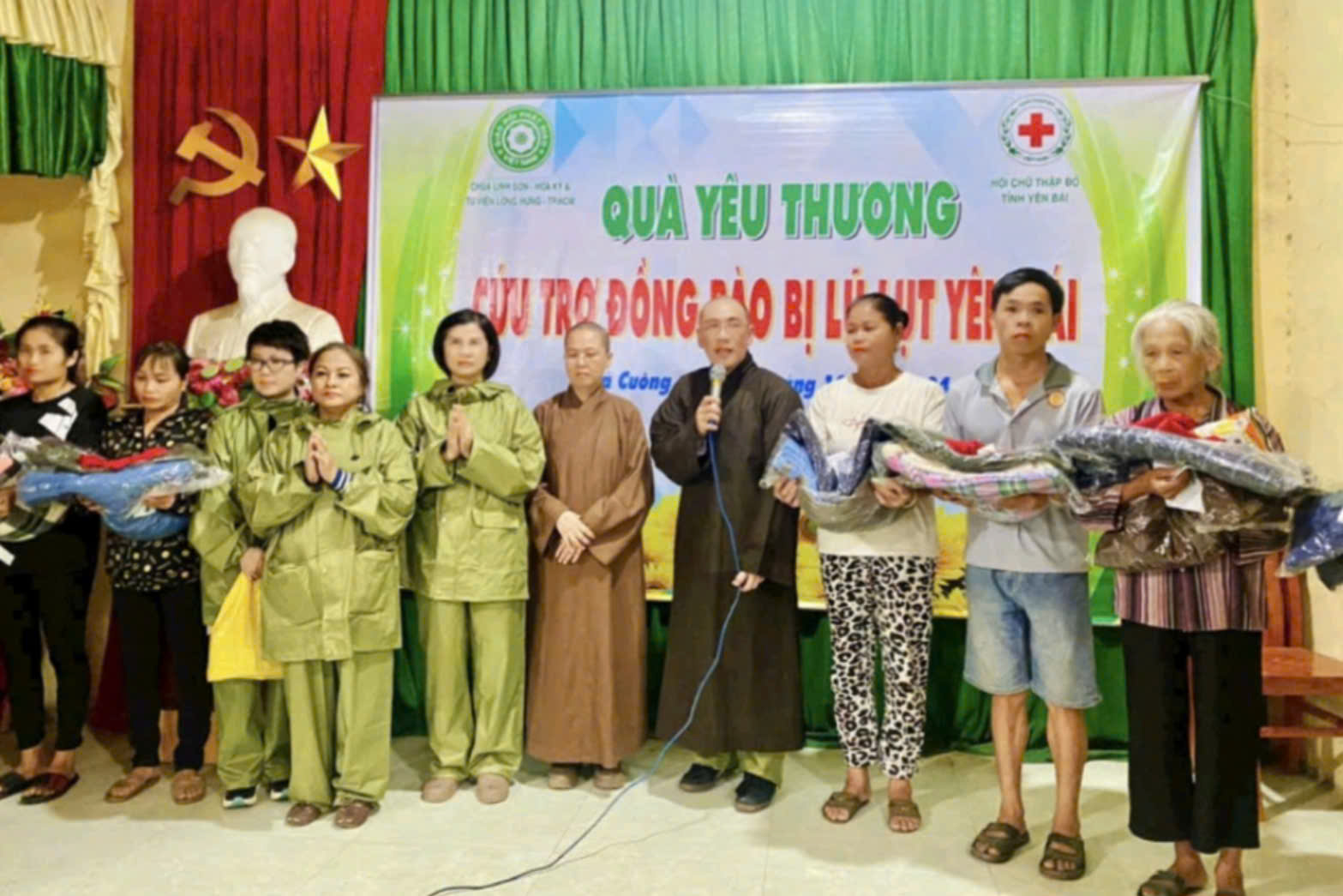 Nhằm chia sẻ và hỗ trợ kịp thời người dân các tỉnh phía Bắc bị thiệt hại nặng nề do cơn bão số 3 (bão Yagi) gây ra, Đoàn cứu trợ chùa Linh Sơn (Hoa Kỳ) và tu viện Long Hưng (TP.Hồ Chí Minh), phối hơp với chính quyền địa phương, tổ chức trao quà cho đồng bào bị thiệt hại nặng nề do cơn bão số 3, tại các tỉnh Lào Cai, Yên Bái, giúp người dân khắc phục hậu quả sau cơn bão.