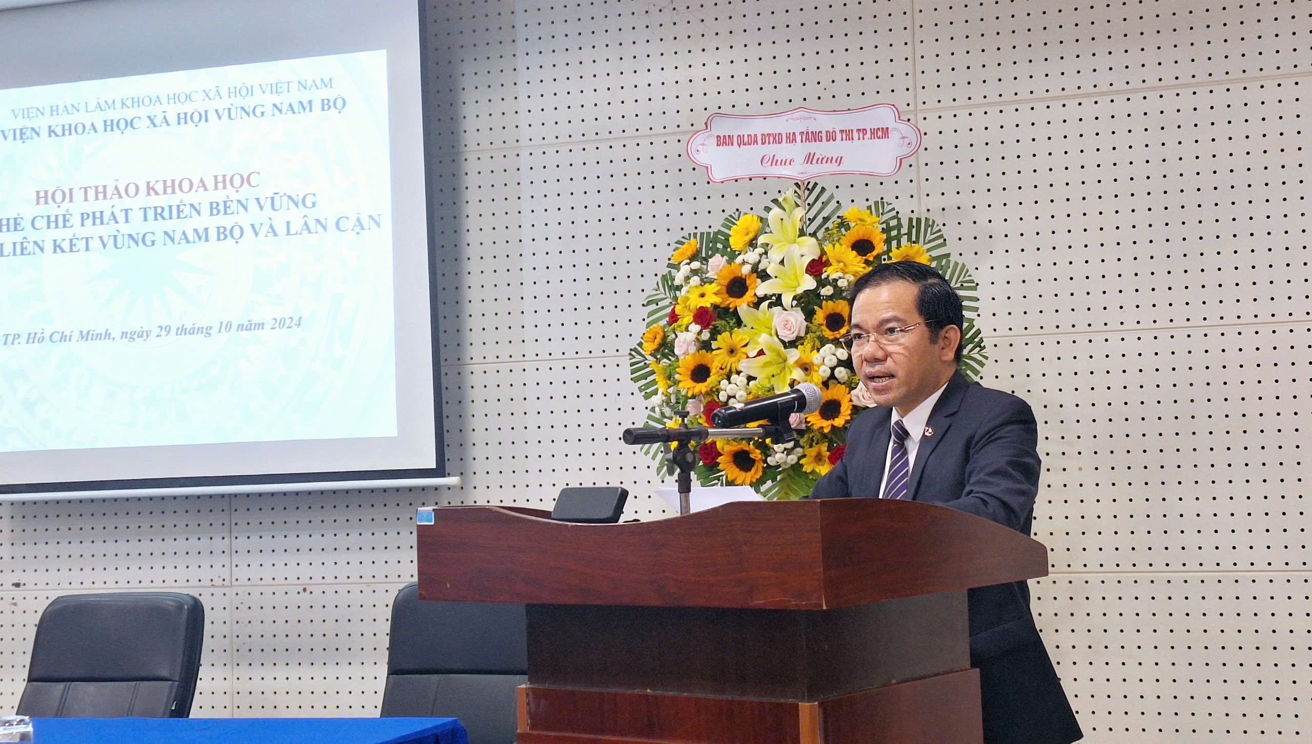 Ngày 29-10, Viện Khoa học xã hội Vùng Nam Bộ tổ chức Hội thảo khoa học Thể chế phát triển bền vững trong liên kết vùng Nam Bộ và lân cận. Chủ trì hội thảo có PGS.TS Vũ Tuấn Hưng, Bí thư Đảng ủy, Phó viện trưởng phụ trách Viện Khoa học xã hội Vùng Nam Bộ và TS Trần Văn Khuyên, Phó trưởng Ban Tuyên giáo Thành ủy TPHCM.
