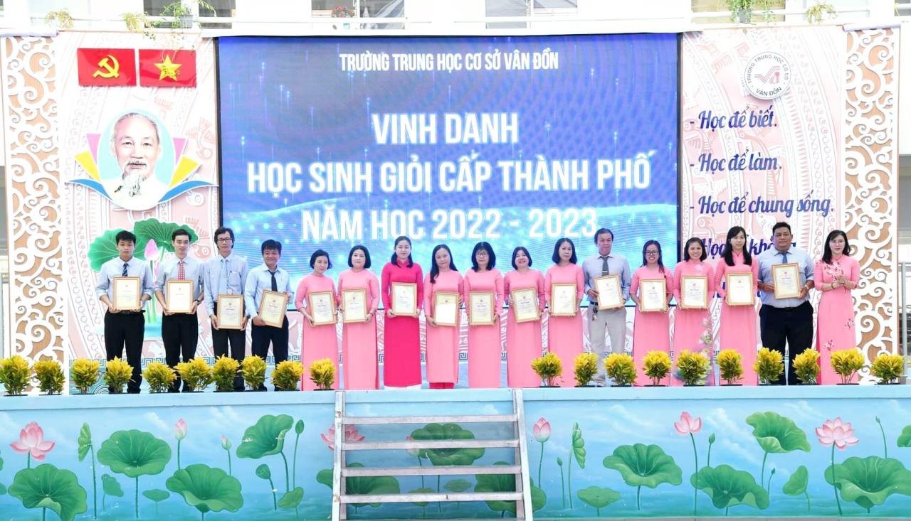 Đồng thời, chú trọng đến công tác giáo dục chính trị, tư tương, đạo đức lối sống và các hoạt động truyền thống như: Triển khai học tập và làm theo tư tưởng, đạo đức, phong cách Hồ Chí Minh bằng nhiều nội dung hình thức; tổ chức chương trình “Em yêu biển đảo Việt Nam”… với những kết quả đã đạt được, Đoàn trường THCS Vân Đồn đã vinh dự được nhận giấy khen của Quận Đoàn quận 4 . Năm học 2023 – 2024, Chi Đoàn trường THCS Vân Đồn đã được đề xuất nhận bằng khen của Thành Đoàn TP.HCM. Cá nhân cô Trúc được trao tặng nhiều giấy khen, bằng khen có thành tích xuất sắc trong công tác Đoàn và trong công tác giảng dạy.