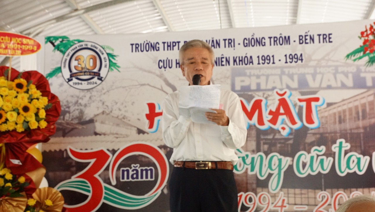 Thầy Lê Duy Trường – Nguyên Hiệu trưởng trường THPT Phan Văn trị, phát biểu tự hào về các em đã trưởng thành công việc ổn định và luôn dặn dò các em sống có ích cho xã hội.