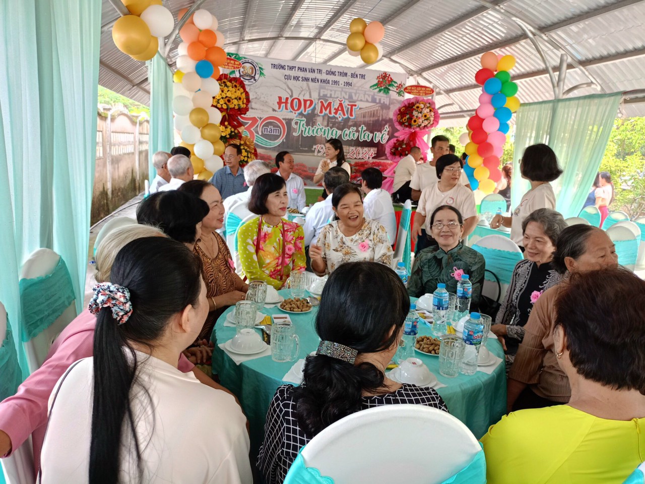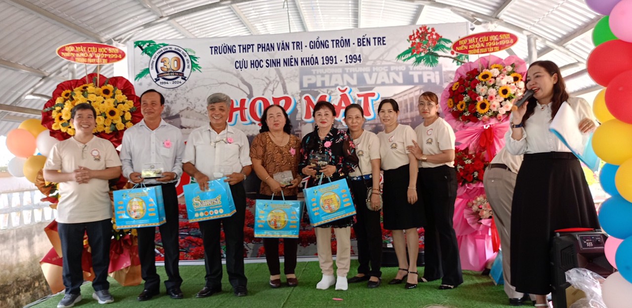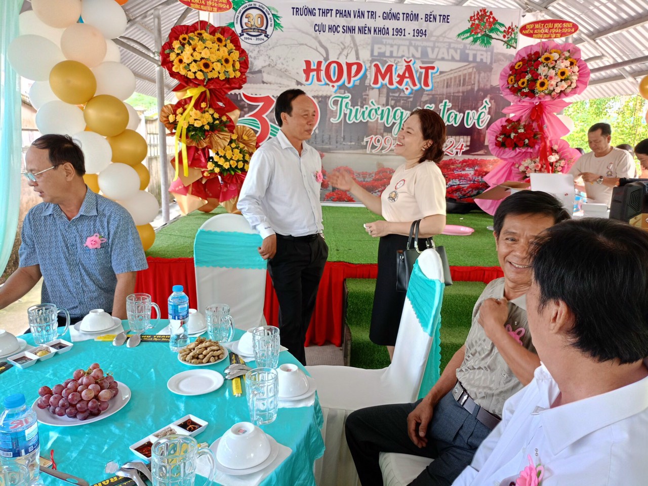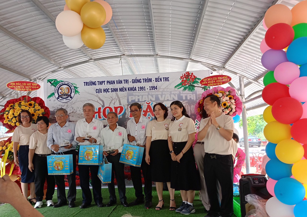 Vừa qua cựu học sinh Trường THPT Phan Văn Trị (Giồng Trôm, Bến Tre) có buổi gặp mặt các cựu học sinh và thầy, cô giáo, cùng nhau ôn lại những kỹ niệm trong khoảng thời gian học tập tại trường và chia sẽ những kinh nghiệm trong công tác, sản xuất, kinh doanh, những câu chuyện thường ngày trong cuộc sống. Tham dự có trên 60 cựu học sinh và 24 Quý thầy, cô giáo.