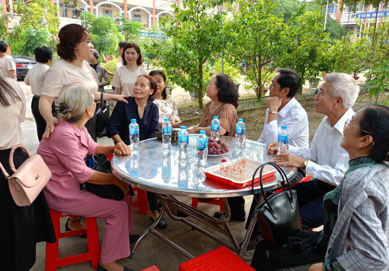 Sau thời gian dài gặp lại học sinh cô giáo và học sinh năm xưa xúc động tại buổi họp mặt.