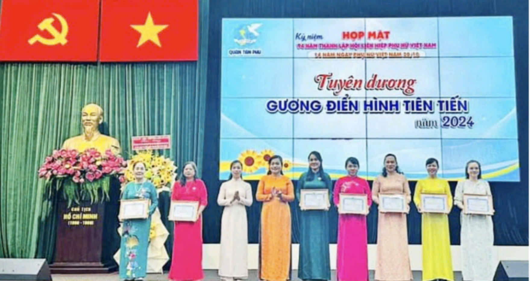 Ngày 18/10/2024, Hội Liên hiệp Phụ nữ (LHPN) quận Tân Phú, TP.Hồ Chí Minh, tổ chức họp mặt kỷ niệm 94 năm Ngày thành lập Hội LHPN Việt Nam và 14 năm Ngày Phụ nữ Việt Nam. Đây là dip ôn lại trang sử vẻ vang của Phụ nữ Việt Nam và phong trào Phụ nữ Việt Nam.