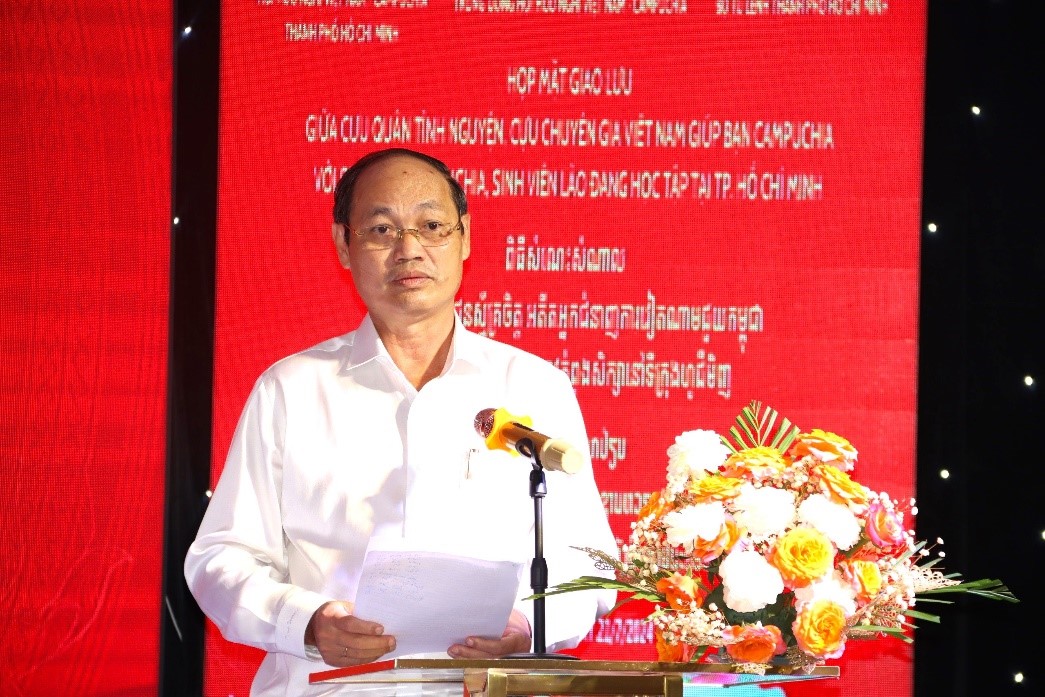 Tại buổi họp mặt, toàn thể hội trường đã mặc niệm cố Tổng Bí Thư Đảng Cộng sản Việt Nam Nguyễn Phú Trọng. Tiếp đó, Trung tướng Nguyễn Văn Nam, Ủy viên Ban Thường vụ Thành ủy, Tư lệnh Bộ Tư lệnh TP.HCM, Chủ tịch Hội hữu nghị Việt Nam – Campuchia TP.HCM phát biểu ôn lại những lịch sử vẻ vang của cựu quân tình nguyện, cựu chuyên gia giúp bạn Campuchia thoát khỏi họa diệt chủng Pol Pot năm 1975 – 1979. Trung tướng cũng nhấn mạnh và đề cao vai trò của quân tình nguyện, chuyên gia giúp bạn Campuchia, đồng thời khẳng định tình hữu nghị giữa hai nước Việt Nam và Campuchia luôn bền vững và sẽ cố gắng phát huy để trường tồn theo thời gian.