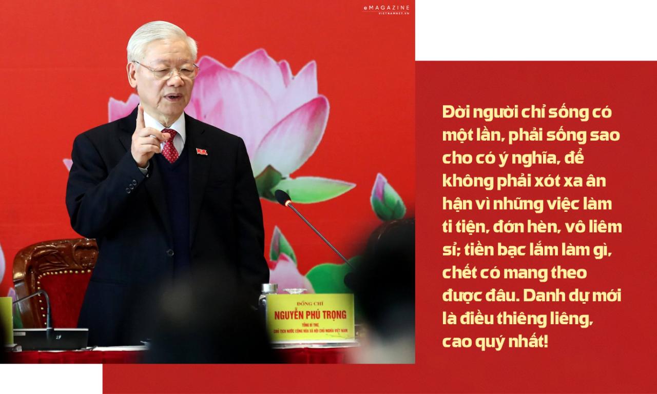 Tại Hội nghị Công an toàn quốc lần thứ 73 diễn ra ngày 15/01/2018, đến dự, phát biểu chỉ đạo tại Hội nghị, Tổng Bí thư Nguyễn Phú Trọng nhấn mạnh: “Tôi tin tưởng và tha thiết mong rằng: “Với nỗ lực và quyết tâm cao, với tinh thần dám nghĩ, dám làm, dám chịu trách nhiệm, với đội ngũ cán bộ trung thành, tận tụy, có bản lĩnh chính trị vững vàng, phẩm chất đạo đức trong sáng, có trình độ năng lực, lực lượng CAND sẽ hoàn thành xuất sắc nhiệm vụ được giao, lập nhiều thành tích, xứng đáng với niềm tin yêu của Đảng, Nhà nước và Nhân dân. Mong các đồng chí luôn luôn ghi nhớ, khắc sâu vào tâm trí mình mà thực hiện cho bằng được chân lý: “Vì nước quên thân, vì dân phục vụ”; “Còn Đảng thì còn mình”; “Danh dự là điều thiêng liêng, cao quý nhất”.
