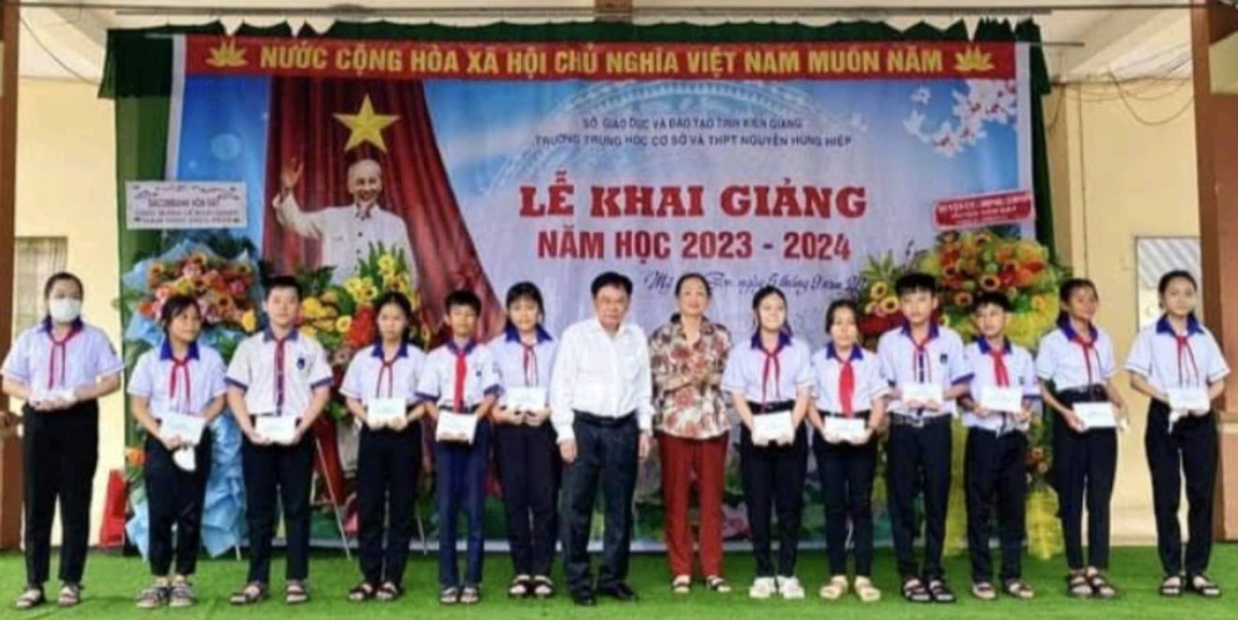 Theo Hiệu trưởng Trường THPT Nguyễn Hùng Hiệp, gia đình nguyên Phó Tổng Thanh tra Chính phủ Nguyễn Chiến Bình, đã tặng gần 1.000 suất học bổng, mỗi suất trị giá 1 triệu đồng cho học sinh nghèo hiếu học của Trường THPT Nguyễn Hùng Hiệp. Ngày 5/9/2023, nguyên Phó Tổng Thanh tra và phu nhân dự Lễ khai giảng Trường THPT Nguyễn Hùng Hiệp năm học 2023-2024 và trao 50 suất học bổng Nguyễn Hùng Hiệp. Nghĩa cử này sẽ được gia đình thực hiện trong những năm tiếp theo.