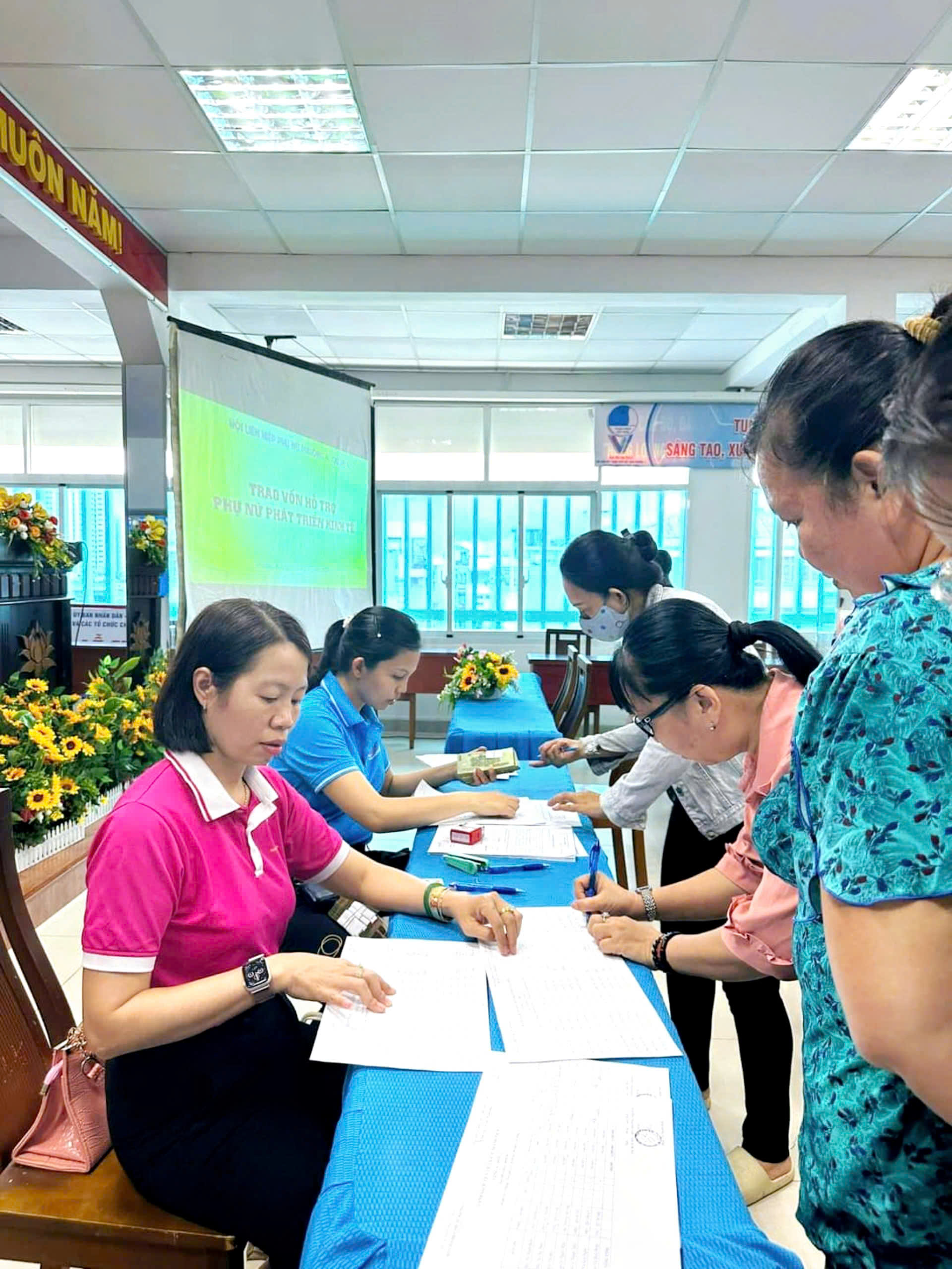 Quan tâm, giới thiệu các nguồn vốn Tín dụng tiết kiệm, triển khai các nguồn vốn vay đến hội viên, phụ nữ. Trong năm 2023 và 6 tháng đầu năm 2024, đã phát vay quỹ hỗ trợ phụ nữ phát triển kinh tế gia đình cho 36 trường hợp với số tiề 720.000.000đ, phát vay quỹ CWED của Hội LHPN Thành phố cho 38 thành viên với số tiền 1.770.000.000đ, giới thiệu vay Ngân hàng chính sách xã hội cho 185 thành viên với tổng số tiền 4.350.000.000đ.