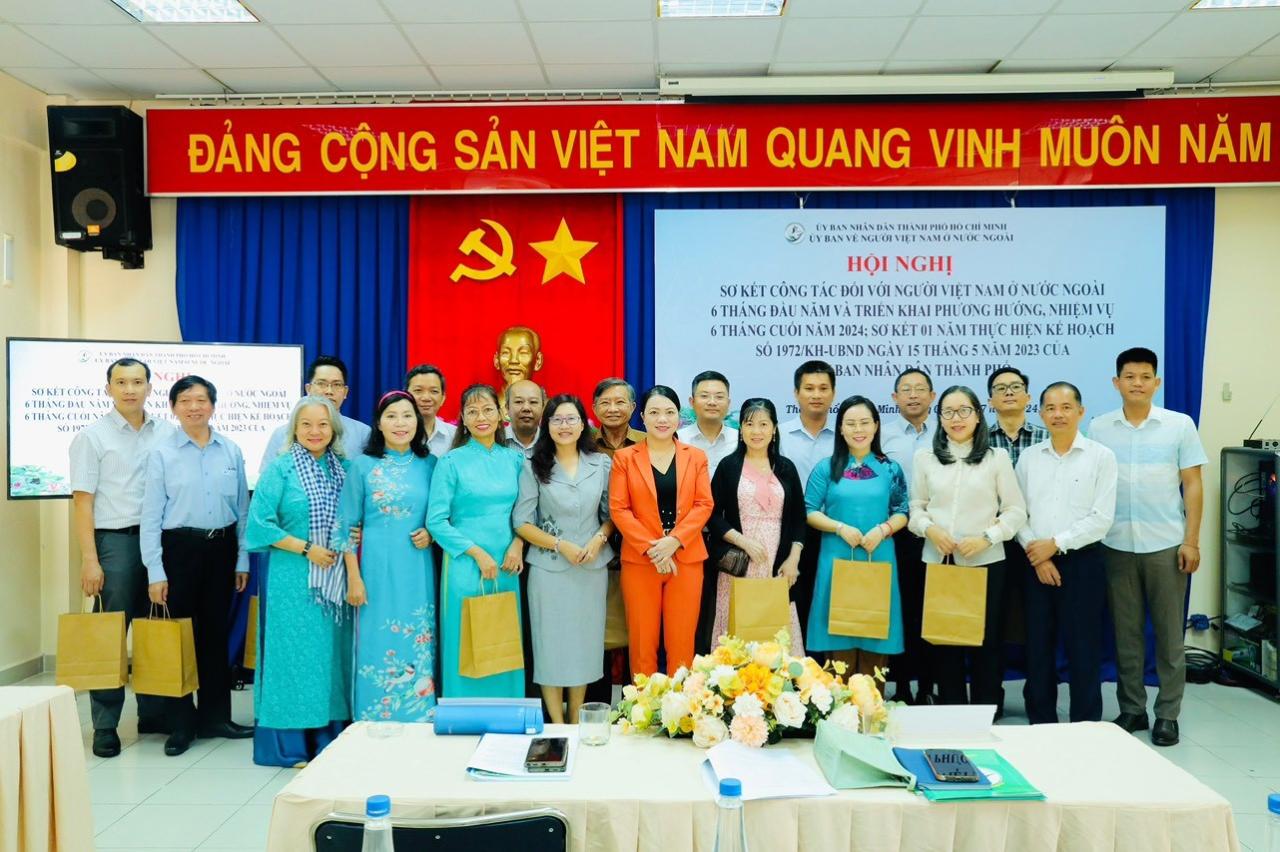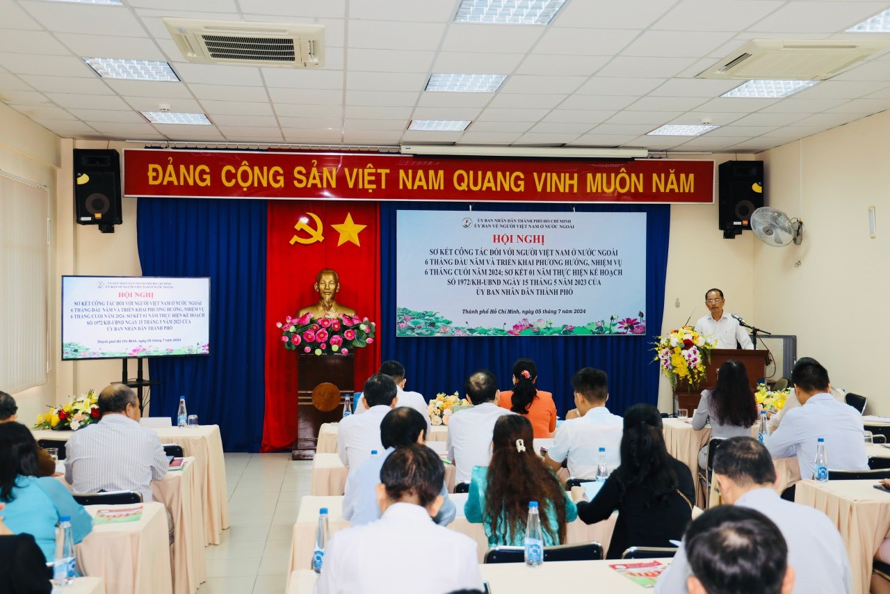 Ngày 5/7, Ủy ban về Người Việt Nam ở nước ngoài TP.HCM tổ chức Hội nghị sơ kết 6 tháng đầu năm 2024 và triển khai phương hướng, nhiệm vụ 6 tháng cuối năm 2024, sơ kết 1 năm thực hiện kế hoạch số 1972/KH – UBND ngày 15/5/2023 của UBND TP.HCM.