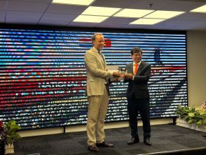 Ông Daniel Coenraad Stork, Tổng lãnh sự quán Hà Lan tại TP. Hồ Chí Minh, trao quà lưu niệm cho ông Trần Trọng Dũng, Chủ tịch Hội hữu nghị Việt Nam – Hà Lan (TP. Hồ Chí Minh).