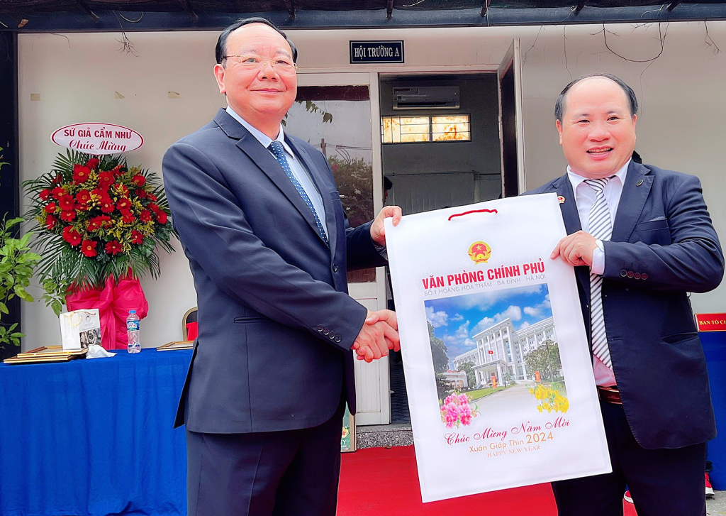PGS-TS Nguyễn Văn Cường.Phó Cục trưởng Cục Hành Chính Quản Trị II.Văn Phòng Chính Phủ, Hội đồng tư vấn Trung tâm đến tham dự chương trình trao tặng lịch chúc Tết của Văn Phòng Chính Phủ cho ông Phạm Đình Vương.