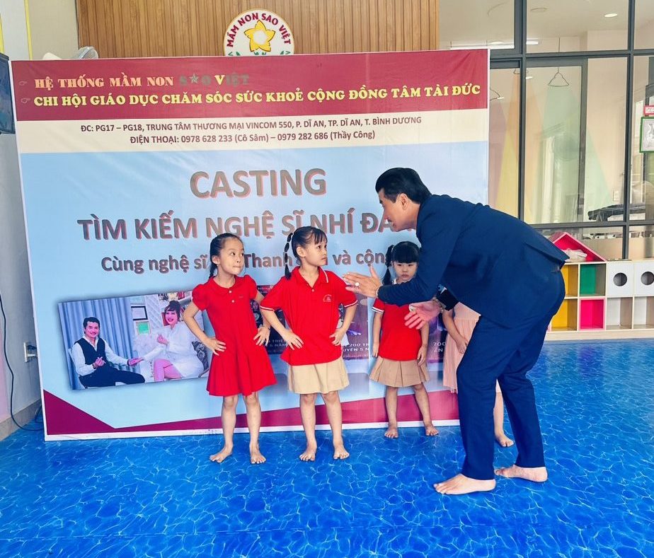 Sáng ngày 02 tháng 3 năm 2024, Tại trường Mầm non Sao Việt 3 (PG17 – PG18 Trung tâm thương mại Vincom 550, Khu phố Thống Nhất, Phường Dĩ An, Thành phố Dĩ An, Tỉnh Bình Dương, ĐT: 0978 628 233 (Cô Sâm) – 0979 282 686 (Thầy Công)) thuộc Hệ thống Giáo dục Mầm Non Sao Việt do cô Nguyễn Thị Sâm – Chủ tịch quản trị kiêm Hiệu trưởng Mầm non Sao Việt, trong nỗ lực thúc đẩy và phát triển tài năng nghệ thuật ở trẻ em, Trường Mầm Non Sao Việt 3 đã tổ chức một sự kiện casting đặc biệt, phối hợp cùng nghệ sĩ nổi tiếng Phi Thanh Vân và cựu người mẫu, diễn viên Andy Hoàng, sự kiện casting nhằm tìm kiếm những tài năng nhí đầy tiềm năng trong lĩnh vực nghệ thuật.