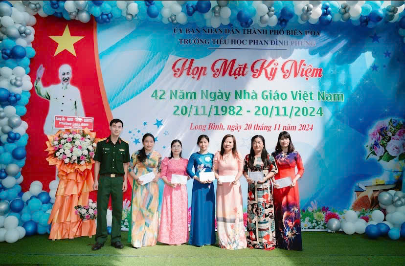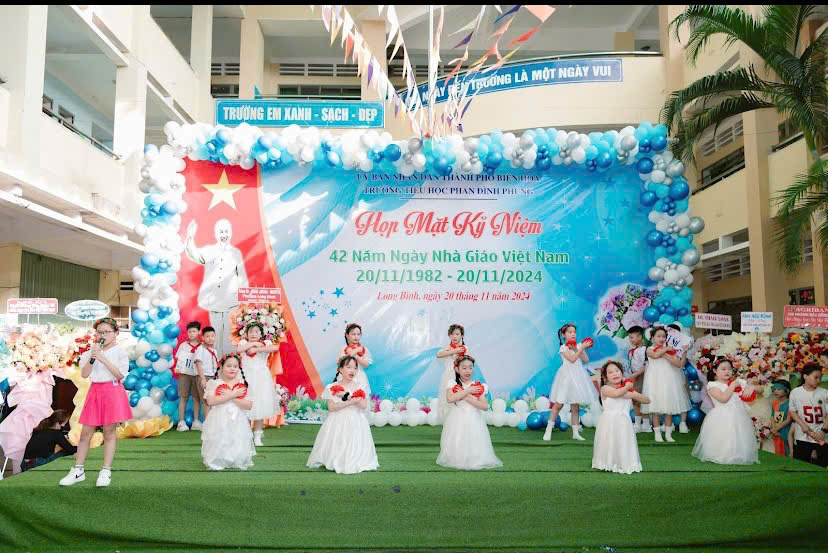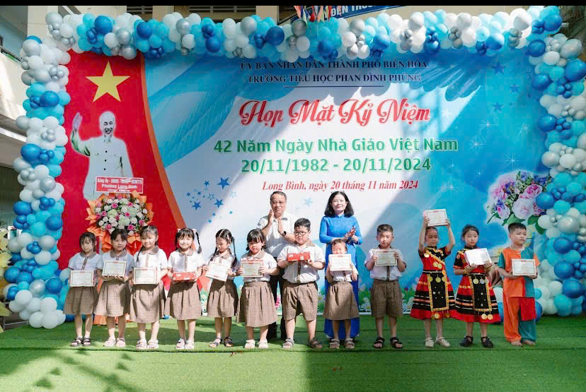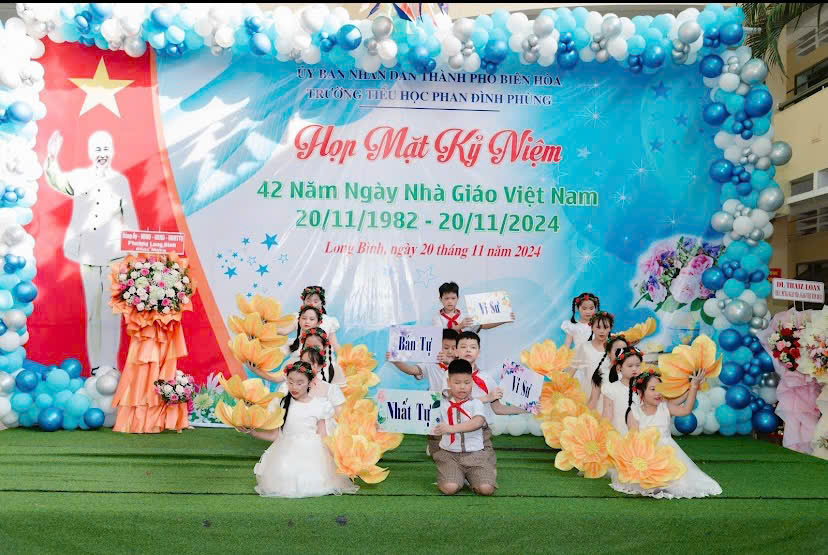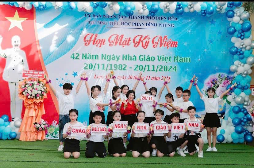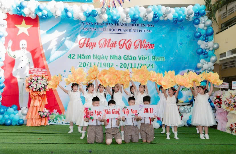 Sáng ngày 20/11, tại Trường Tiểu học Phan Đình Phùng (phường Long Bình, TP. Biên Hòa) đã long trọng tổ chức lễ kỷ niệm 42 năm ngày Nhà giáo Việt Nam (20/11/1982 – 20/11/2024). Buổi lễ là dịp để tri ân những đóng góp to lớn của các thầy cô giáo trong sự nghiệp trồng người.