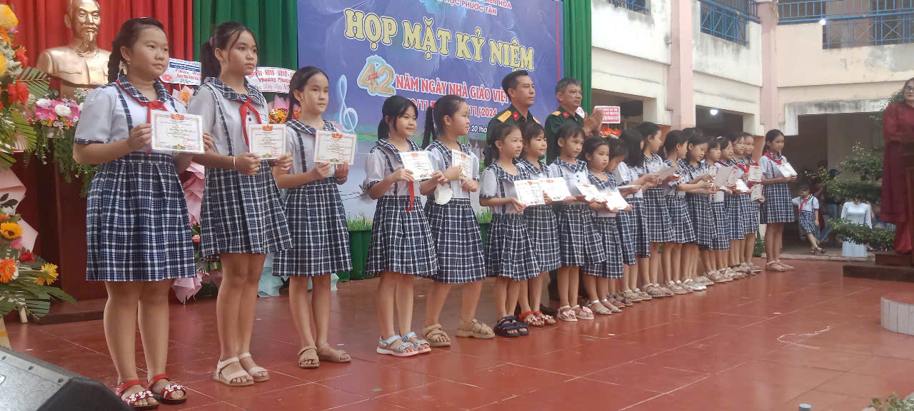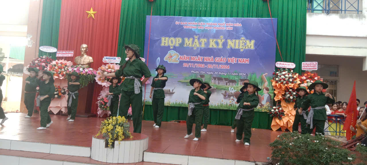 Sáng ngày 20/11, tại Trường tiểu học Phước Tân (phường Phước Tân, TP. Biên Hòa) đã tổ chức Họp mặt kỷ niệm 42 năm ngày Nhà giáo Việt Nam (20/11/1982 – 20/11/2024). Tham dự có ông Trần Thế Biên-Phó Bí thư Đảng ủy-Chủ tịch HĐND phường; ông Vũ Chí Thống-Chỉ huy Trưởng Ban chỉ huy Quân sự phường; bà Trương Thị Mỹ Duyên-Phó Bí thư Đoàn phường; về phía nhà trường có thầy Nguyễn Đình Thỏa-Hiệu Trưởng nhà trường; cô Hoàng Thị Mỹ Hồng-Phó Hiệu Trưởng nhà trường; cô Vũ Thị Thanh Thủy- Phó Hiệu Trưởng nhà trường cùng Đại diện CMHS….