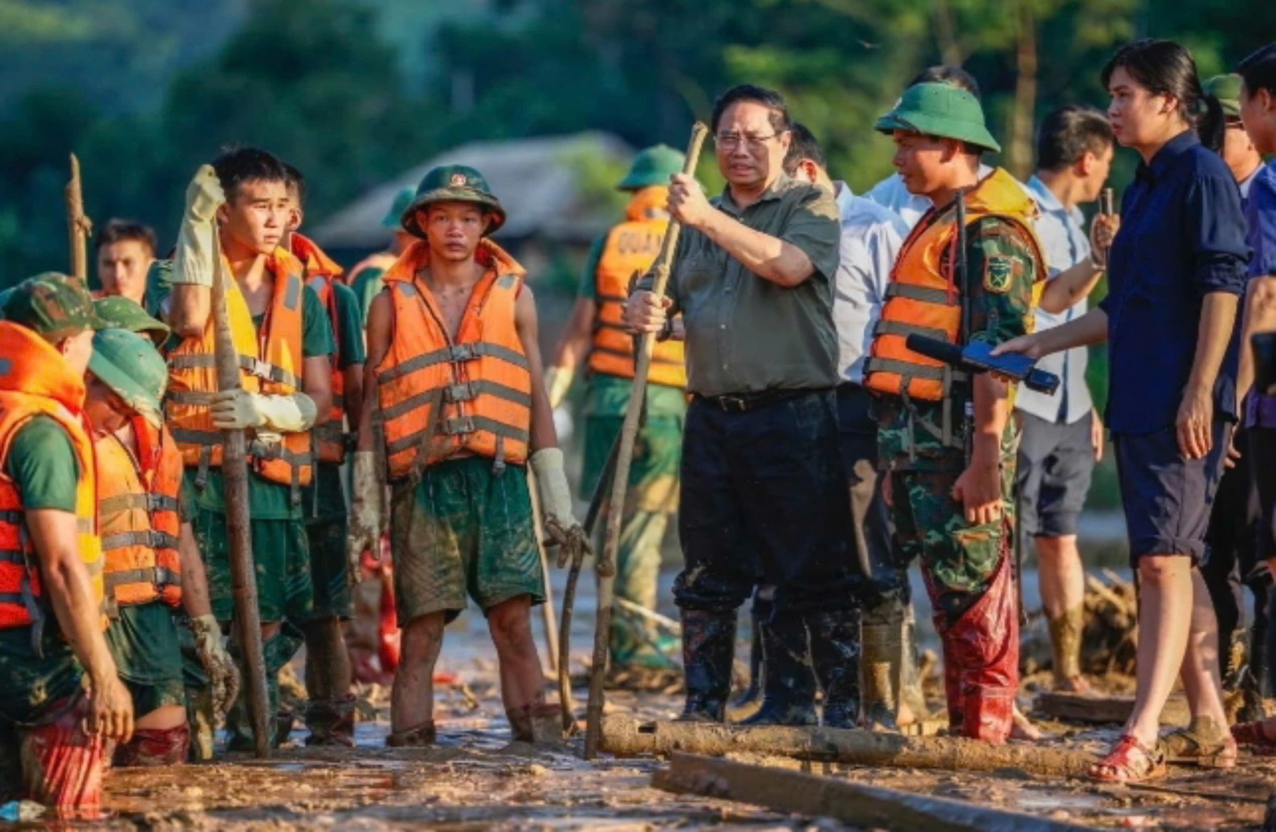 Thủ tướng Phạm Minh Chính trực tiếp đến hiện trường động viên các chiến sĩ, vất vả trong công tác tìm kiếm các nạn nhân mất tích tại Làng Nủ.